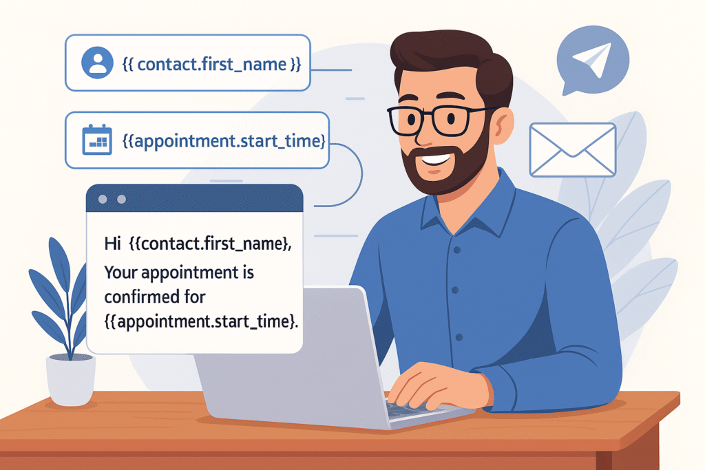 That is where merge fields come in. They let you automatically insert information like a customer’s name, email, or appointment time into your messages without typing it manually.