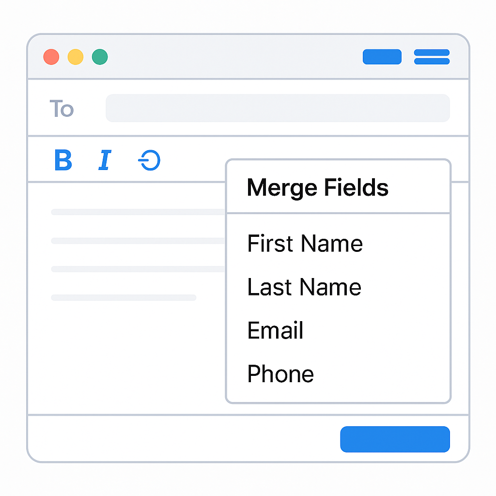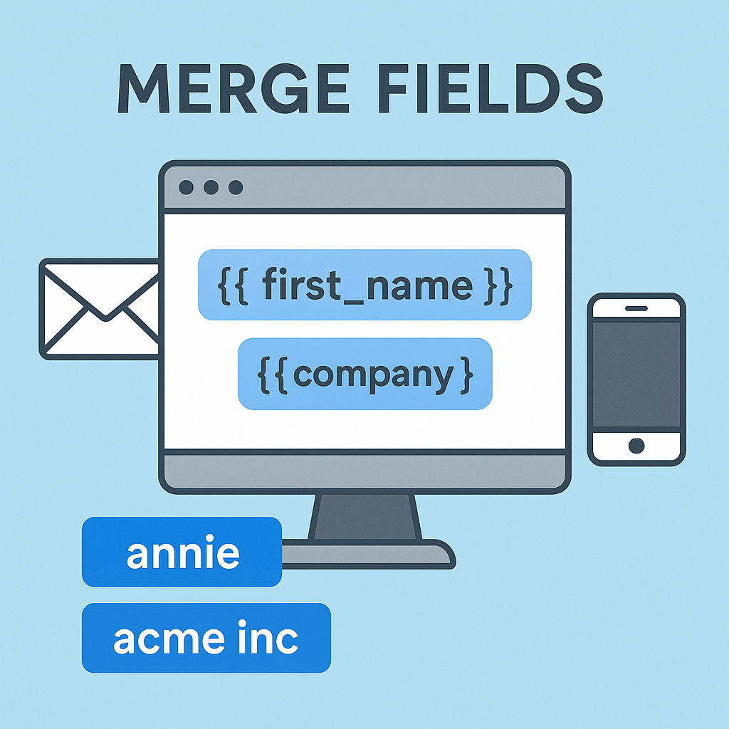 A merge field is a small placeholder that pulls real data from your contact records or account settings and adds it into a message automatically.