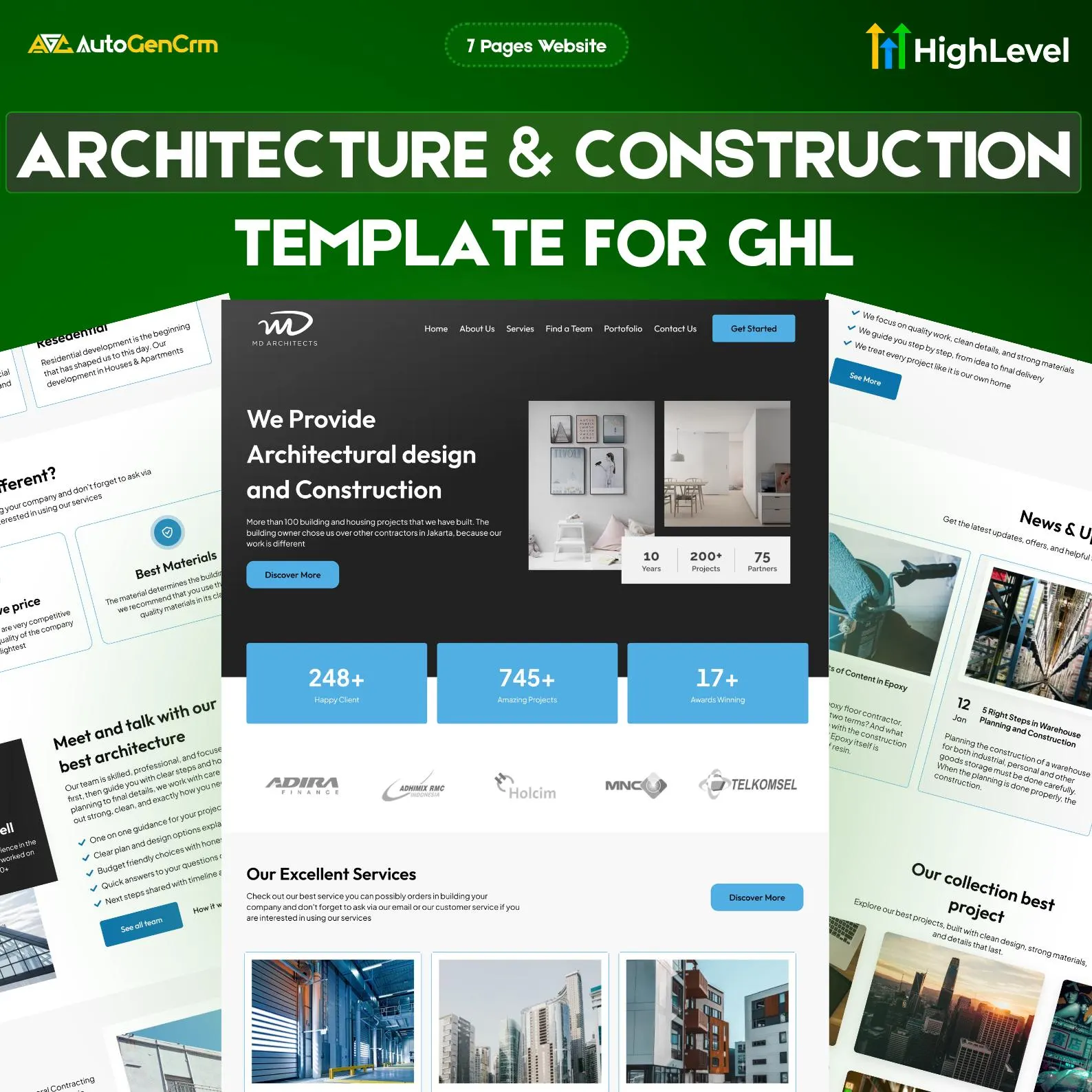 Architecture Construction GoHighLevel Template | GHL Contractor Website | 7 Page Website Design