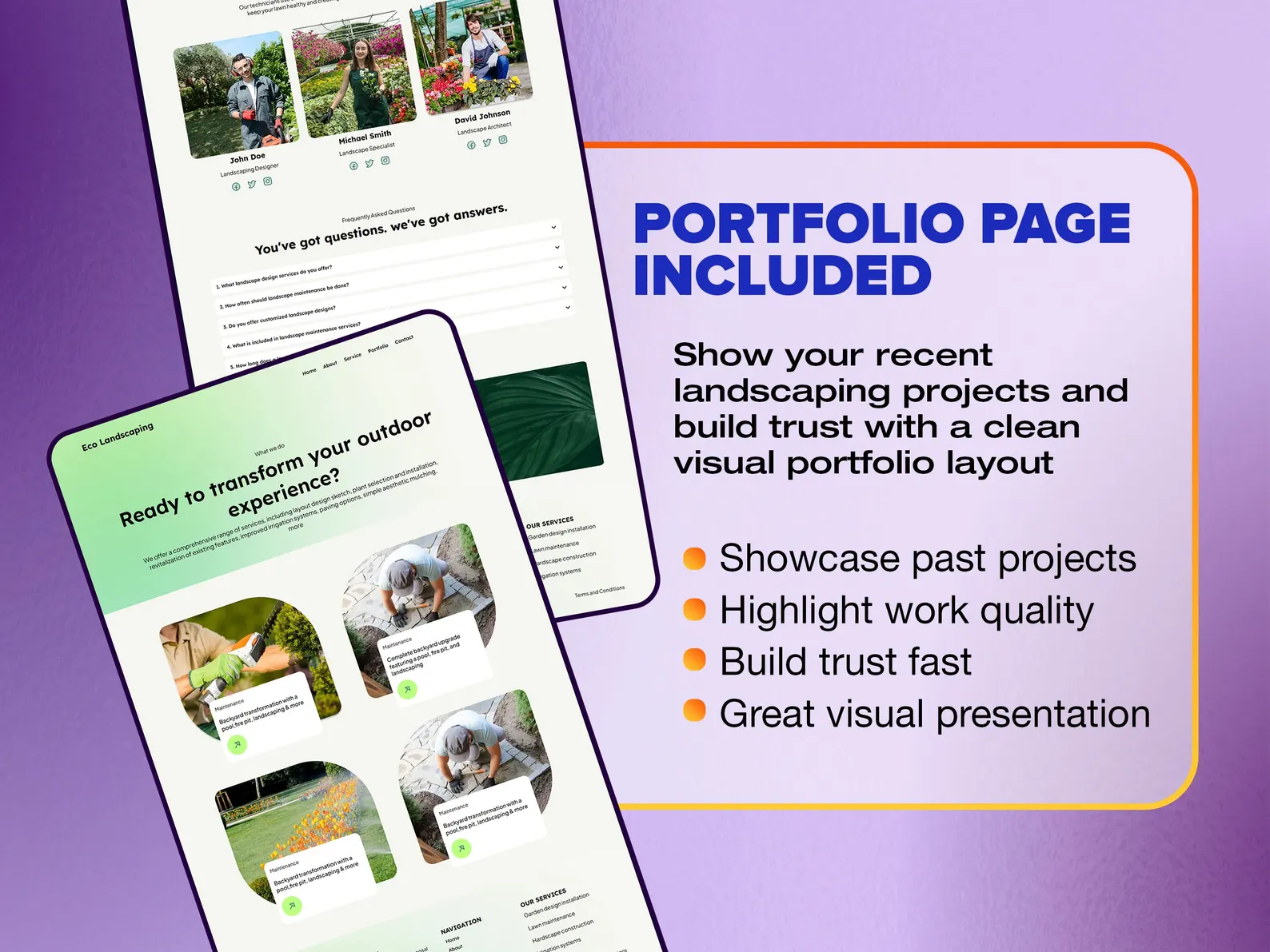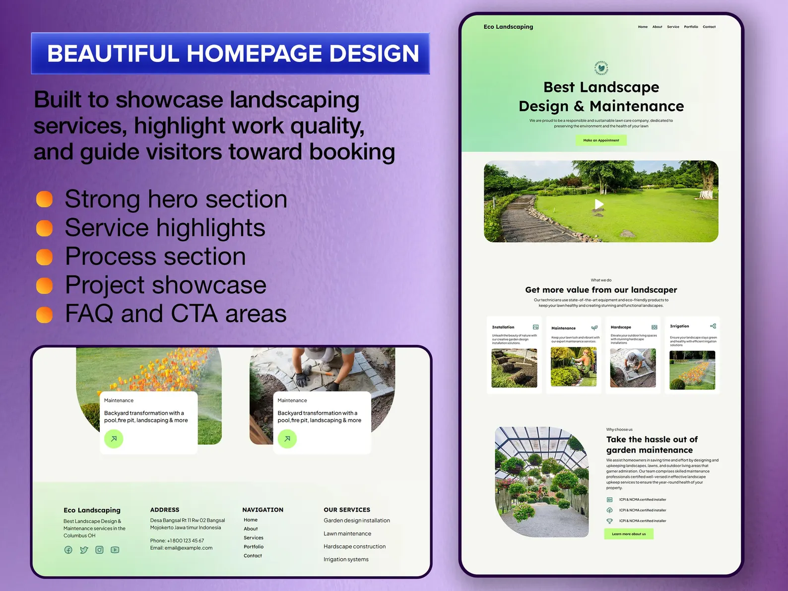 – Portfolio gallery page built specifically to showcase your completed landscaping work