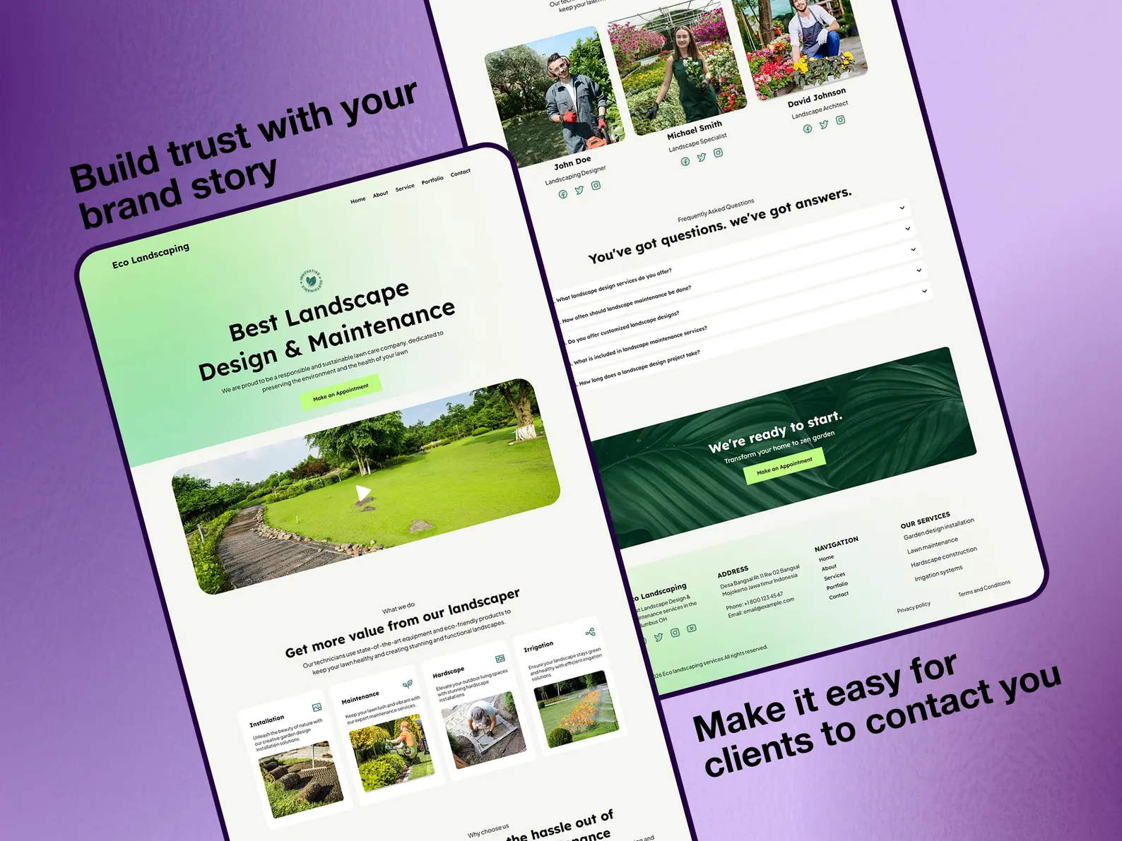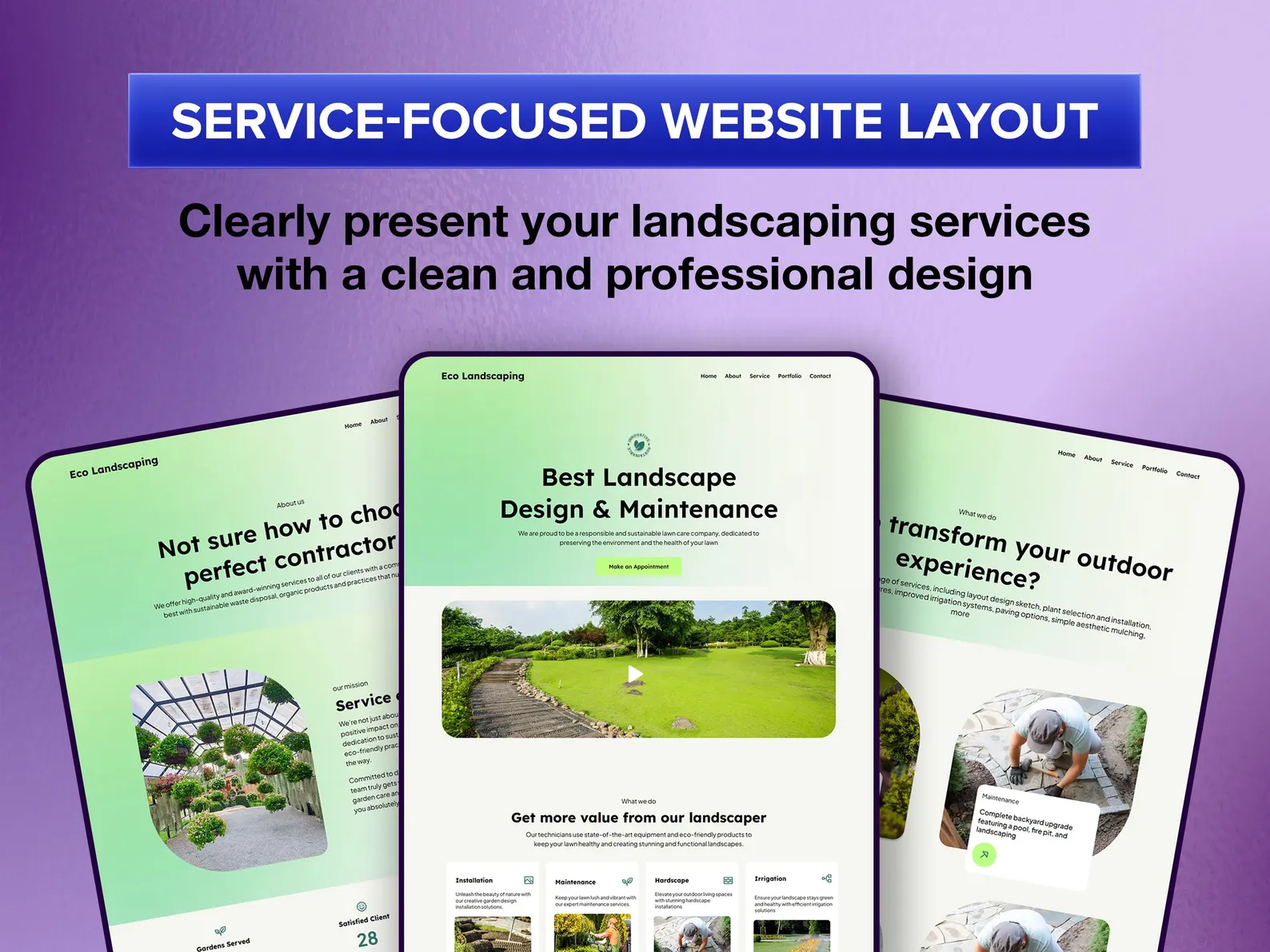 – Modern clean design — fresh green and white color palette built for outdoor service businesses