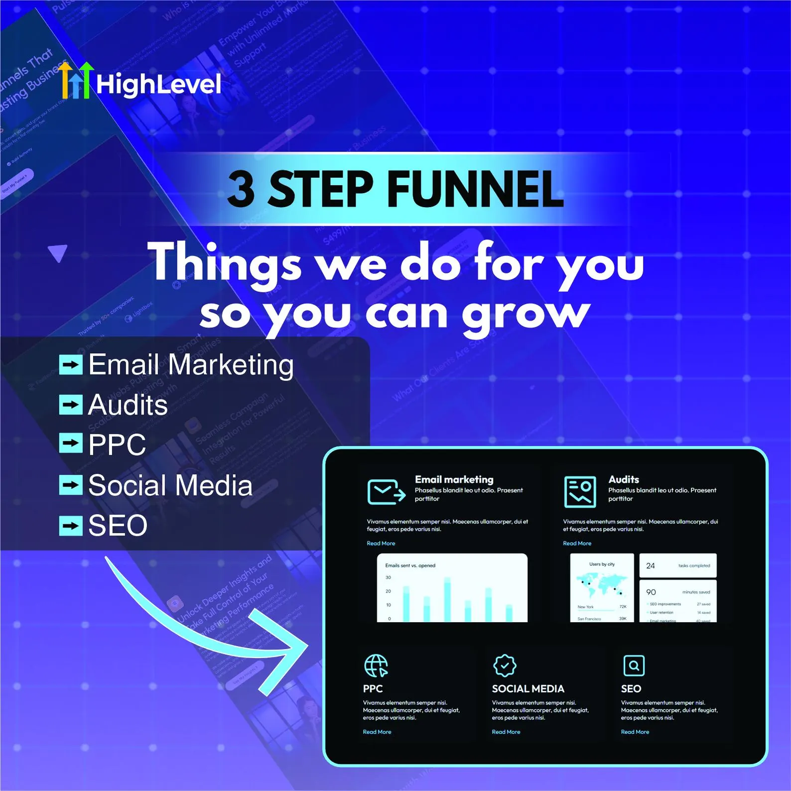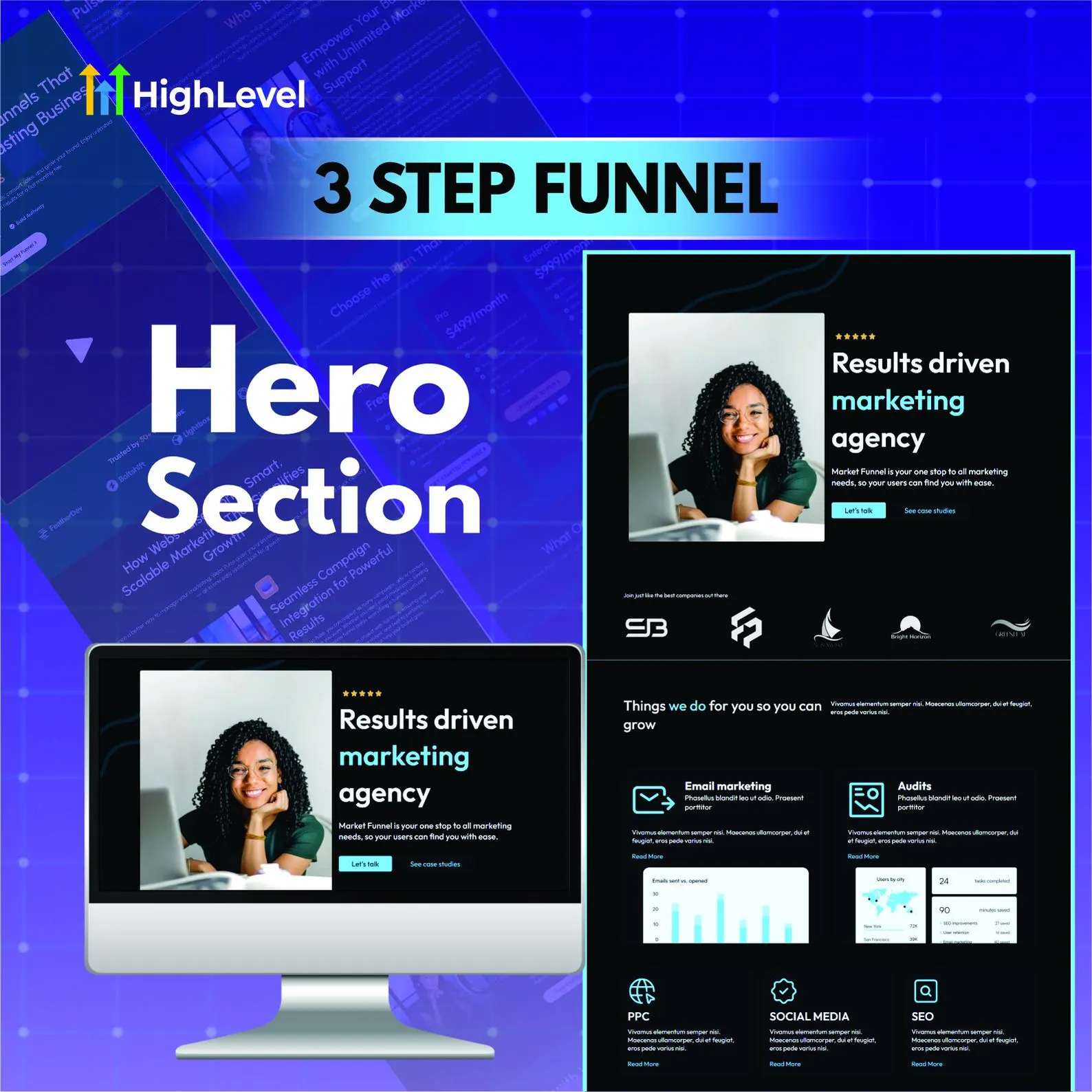 This GoHighLevel marketing page gives you a clean design and a clear flow, so visitors know what you do and what to do next.