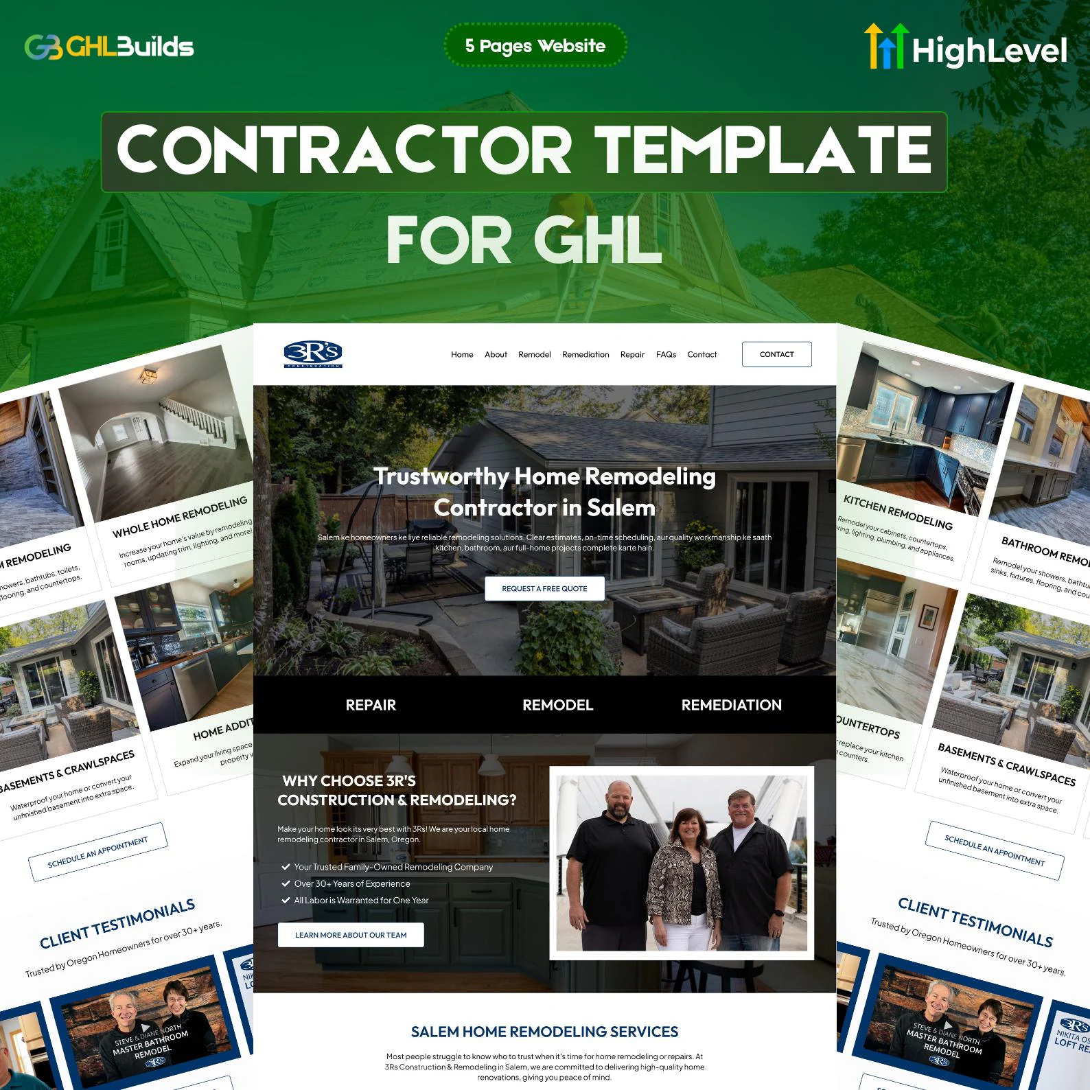 A complete home remodeling and repair contractor website template for GoHighLevel.